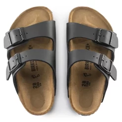 The all-time icon, sized down just for kids. Durable and easy to clean, Birko-Flor® gives the two-strap look a classic, leather-like finish. Complete with classic BIRKENSTOCK design elements, like adjustable buckles and a contoured cork-latex footbed to keep little feet comfortably on the move.
