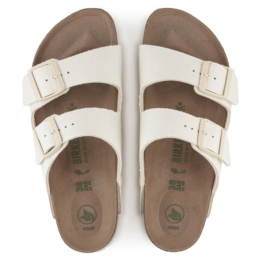 The legendary two-strap design from BIRKENSTOCK – the Arizona, now in a vegan material. Iconic style with the signature comfort of the BIRKENSTOCK footbed. Featuring a fashion forward canvas upper with tonal buckles. The upper is made from a soft canvas.