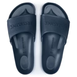 The BIRKENSTOCK Barbados is a sporty slide design with an embossed upper and logo lettering. Modeled on the cork sandal, this sandal is made from one piece of light, flexible and waterproof molded EVA.
