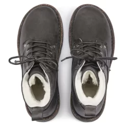 The BIRKENSTOCK Bryson is a casual lace-up boot. It boasts an understated, rustic look. The cork PU midsole makes it an instantly recognizable BIRKENSTOCK design. This winterized version is especially cozy with the upper and footbed lined in genuine shearling, to keep your feet warm. The upper is made from water repellent, oiled suede.
