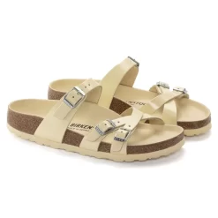 Sleek, crisscross straps with the comfort to match. The Franca’s strappy, style-forward design features premium natural leather with a shiny patent coating for statement-making sheen. Complete with classic BIRKENSTOCK design elements, like a contoured cork-latex footbed for the ultimate in all-day support.