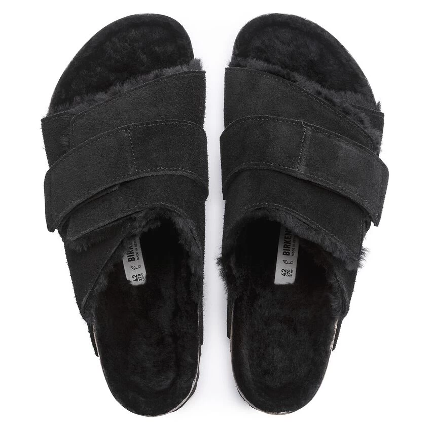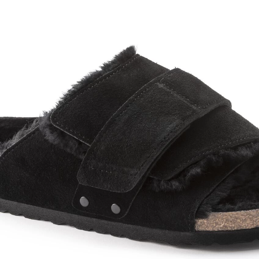 The BIRKENSTOCK Kyoto is reinterpreted from the classic Zürich model. The buckles have been replaced with a hook and loop closure for optimum fit. This version is incredibly cozy thanks to its shearling lining and padding. The upper is made from especially soft suede.