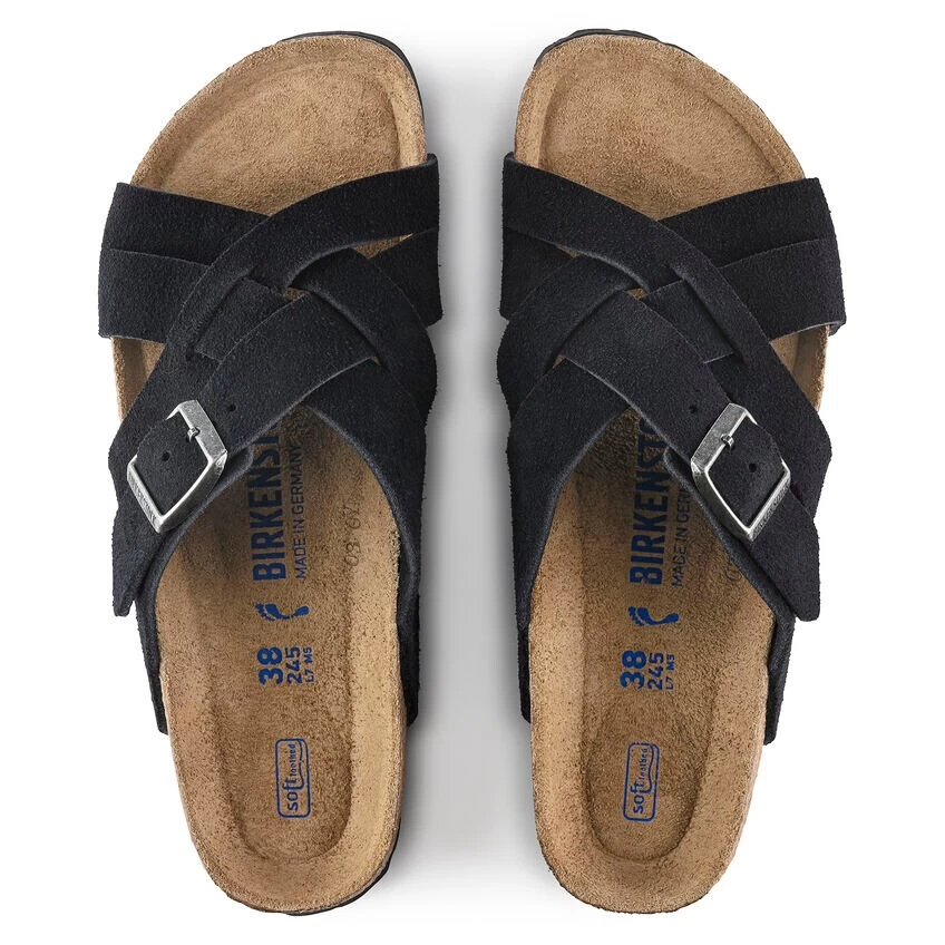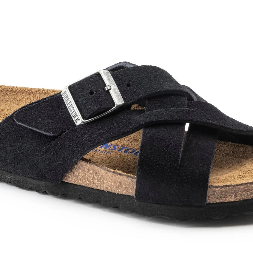 The Lugano is a retro woven-style sandal, featuring soft, suede leather crossed-straps and the classic comfort of a BIRKENSTOCK footbed. With its additional foam layer, the soft footbed offers extra comfort – all day long.