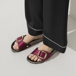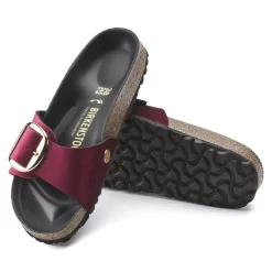 After party ready. A smooth, velvety upper gives the Madrid a subtle shimmer for the season. The soft pink style pairs perfectly with a shiny, oversized buckle and tonal, smooth leather footbed for a luxe look inside and out. Complete with go-all-night comfort from the original contoured BIRKENSTOCK footbed.