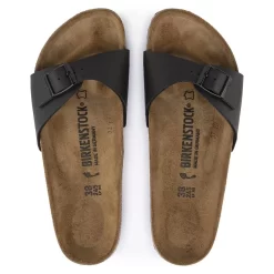 The original BIRKENSTOCK Sandal. A strap, a buckle, and a contoured cork footbed are masterfully combined to create the Madrid. The upper is made from the skin-friendly, hard-wearing synthetic material Birko-Flor®.