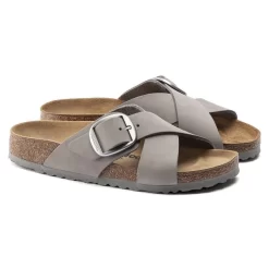 The BIRKENSTOCK Big Buckle Siena is an elegant and stylish sandal featuring crossed straps and a large buckle. The upper is made from high-quality soft nubuck leather for a natural look.