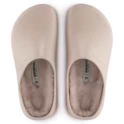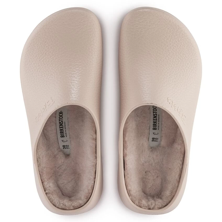 The Super Birki is an incredibly versatile shoe, perfect for everyday wear. This shoe is a fun splash friendly clog, featuring a shearling lining for extra warmth. The upper is made of polyurethane (PU), it is flexible, and water- and dirt-repellent for easy care.