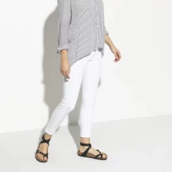 The BIRKENSTOCK Yara stands out with its curvy narrow strap that gives the sandal a feminine touch. The heelless sandal with an ankle strap combines optimum grip and comfort with a light and svelte appearance. The upper is made from extra thick, oiled nubuck leather with an open-selvage finish.
