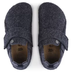 Their go-to indoor slipper, optimized for at-home fun and function. The Zermatt keeps kids cozy and comfortable, with soft wool felt and hook-and-loop fasteners that let them easily adjust the fit. A BIRKENSTOCK cork-latex footbed gives little feet the support they need, with a latex layer underfoot to keep them confidently on the move. Play on.